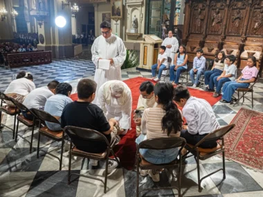 Arquidiócesis Destacado Homilías Cena del Señor: Compartir el pan y servir a la humanidad ¡No destruirla! En una emotiva celebración, el Cardenal Carlos Castillo lavó los pies a doce niños y niñas de la… abril 2, 20262 minutos
