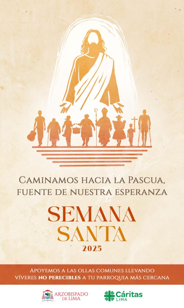 Nos preparamos para vivir esta Semana Santa interpelados por las realidades complejas que afrontan miles de personas en nuestra sociedad: muertes por extorsión, hambruna, violencia contra la mujer, impunidad e injusticia. Por eso, bajo el lema: «Caminamos hacia la Pascua, fuente de nuestra esperanza», este tiempo de conversión personal y social estará marcado por un fuerte llamado a la solidaridad.