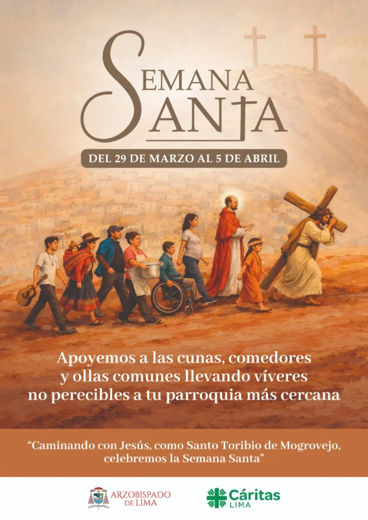 Nos preparamos para vivir esta Semana Santa respondiendo al clamor de nuestros hermanos que sufren el horror de la extorsión, la violencia contra la mujer, la impunidad y la injusticia. Por eso, inspirados en la misión encarnada de Santo Toribio de Mogrovejo, patrón de nuestra Arquidiócesis de Lima, compartimos el cronograma de las celebraciones principales por Semana Santa 2026.